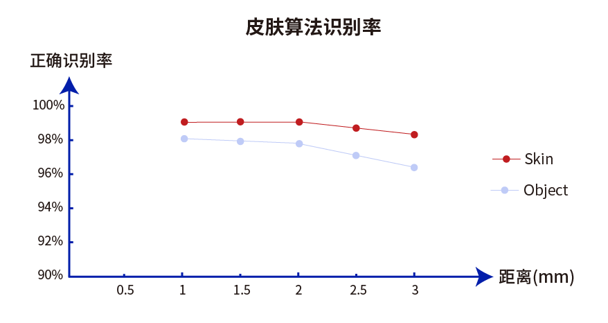 • 配有公司自研皮膚識(shí)別算法,識(shí)別率>98%@3mm