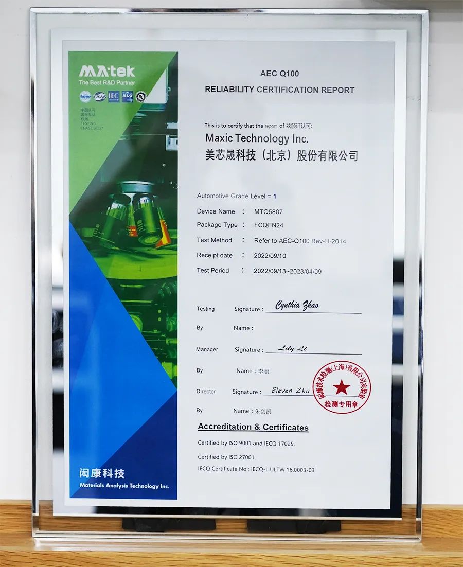 Securing the AEC-Q100 certification is a proof of the professional recognition of Maxic’s product in terms of quality and reliability, and lays a solid foundation for the company’s continued development in the automotive electronics field.