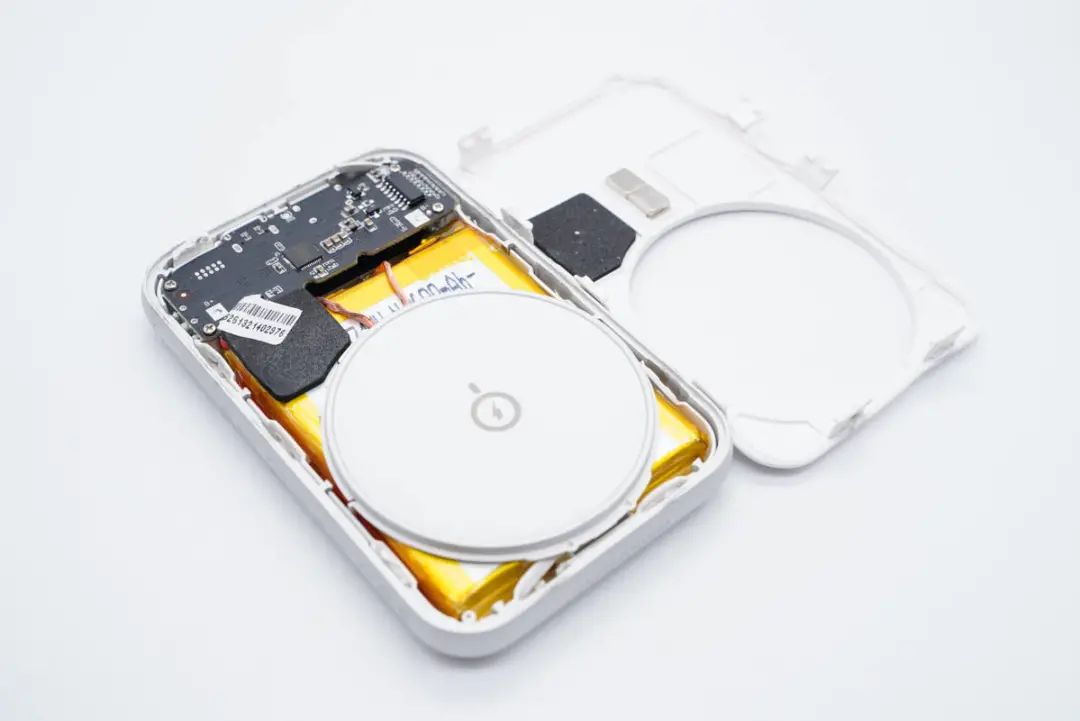 圓形外殼下有磁鐵環(huán)和無線充電線圈。