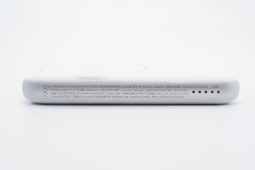摩米士這款磁吸充電寶IP103MFI在內(nèi)置7200mAh容量電芯的情況下仍擁有比較小巧的機身,續(xù)航能力強同時磁吸充電時不會擋住攝像頭,支持邊充邊用。此外配有USB-C和Lightning口,支持20W有線快充,對于iPhone用戶來說帶線方面就變得十分簡便。產(chǎn)品還通過了蘋果MFi認證,質(zhì)量有保證。
