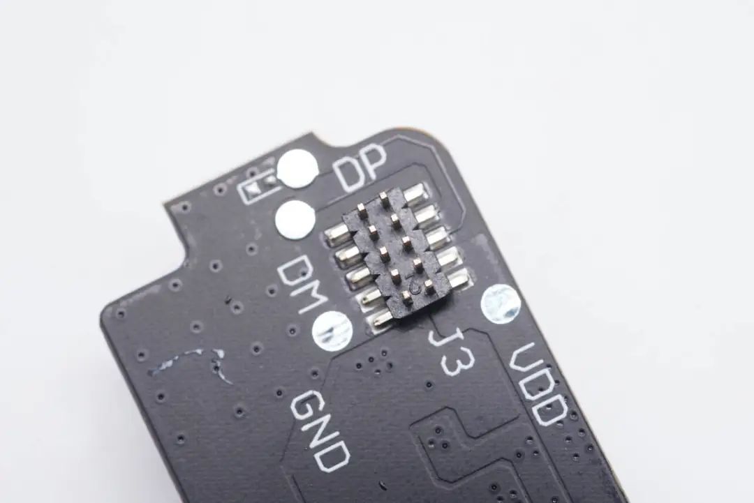 另一塊小板正面設有電感、接口保護MOS管、鋰電保護芯片等器件。