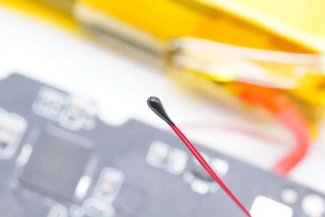 熱敏電阻特寫,用于電芯溫度監(jiān)控。