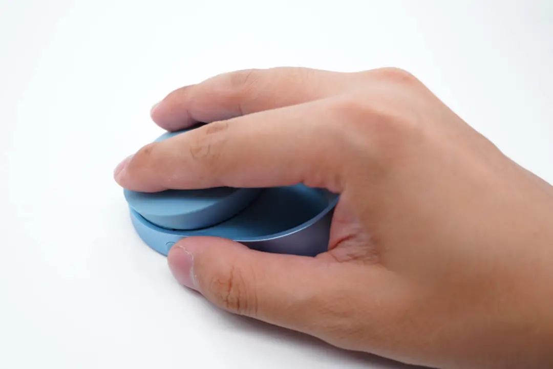 雷柏Ralemo Air 1無(wú)線鼠標(biāo)整體小巧,機(jī)身中空造型設(shè)計(jì)新穎。頂部圓形塑料殼分半即為左右鍵,表面磨砂處理,球形滾輪位于中心稍微偏下位置。