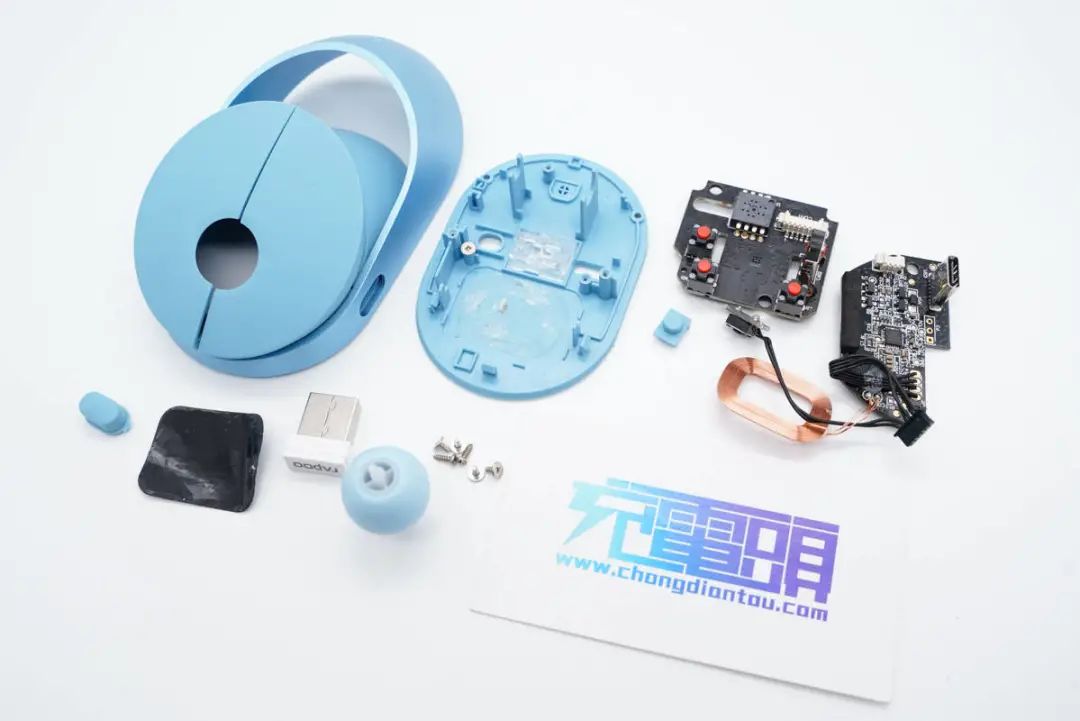 此外還內(nèi)置鋰電池,支持有線和無(wú)線充電,并且充滿一次電官方宣稱(chēng)即可使用約25天,性能比一般的無(wú)線鼠標(biāo)要優(yōu)異不少。下面充電頭網(wǎng)就對(duì)這款產(chǎn)品進(jìn)行詳細(xì)拆解,看看其如何設(shè)計(jì)。