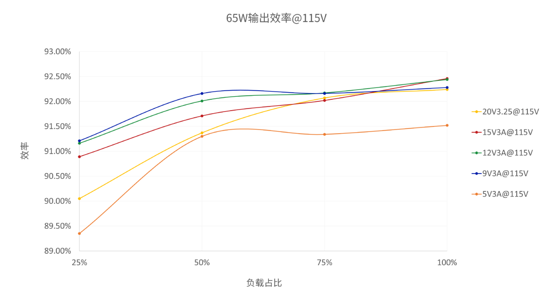 65W PD快充方案關(guān)鍵器件溫度測試結(jié)果